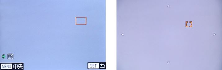 左はPowerShot G7 Xでオートフォーカスの枠のサイズを小にした場合の画面。右はRX100 IIIでSを選択した場合。RX100 IIIのほうが小さな枠でピント合わせが行える