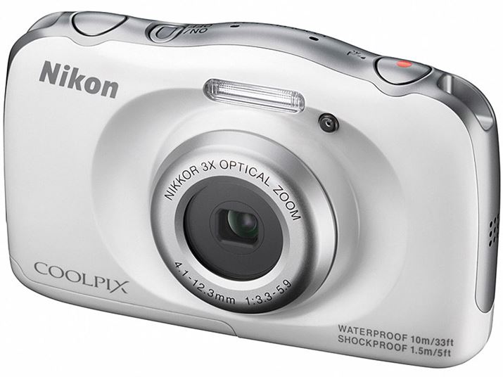 「COOLPIX S33」は、“親子で一緒に楽しめる”がテーマのタフコンデジ。手の小さい子どもが使いやすいよう、重量は180gと軽く、また両手でしっかり持てる左右対称のデザイン、メニューをひらがな表記にできるなどの工夫が随所に施されてます。とはいえ、アウトドア度においても、水深10mまでの防水、1.5mまでの耐衝撃、-10℃までの耐寒、および、防塵性能と、海水浴や川遊び、キャンプなどのファミリーレジャーには必要十分。