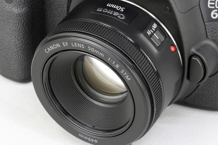 新モデルEF50mm F1.8 STMを、35mmフルサイズ一眼レフ「EOS 6D」に装着したイメージ