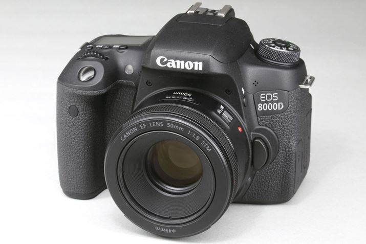 こちらは、最新のAPS-C一眼レフ「EOS 8000D」に装着したイメージ。APS-C一眼レフで利用する場合、35mm判換算で焦点距離80mmの画角となる