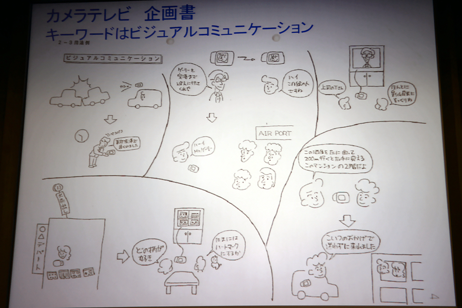 当時の企画書の一部。「QV-10」の原点であるカメラテレビのキーワード「ビジュアルコミュニケーション」って、当時としてはもう、1歩どころか100歩先に行っているのではないでしょうか。「“ないものを作るいうのがカシオの社是。これを一番に考えて開発している」という末高氏の言葉がよく現れていると思いました。これ、今、私たちがスマホでやっていることばかり
