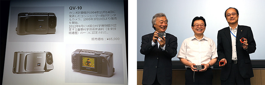 そんな「QV-10」が、今年で発売から20年。カシオ計算機は22日、この“世界初の液晶付きデジタルカメラ”の20周年を記念し、カシオ本社(東京)にてプレスイベントを開催。「QV-10」の開発者である末高弘之氏とカシオ計算機 執行役員の中山仁氏、そして、当時、「QV-10」を複数台所有していたというデジタルメディア評論家の麻倉怜士氏により、開発秘話などを交えたトークイベントが行われました。年間20万台を売り上げる大ヒット商品となった「QV-10」は、はたしてどのように生まれたのでしょうか? なんと「QV-10」は、“カメラ付きテレビ”として開発されたものなのだそうです。
