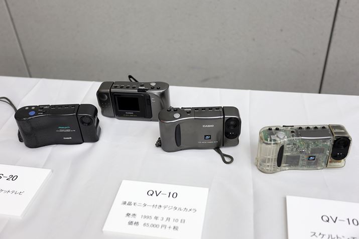 左から、結局未発売だったカメラ付きテレビ「RS-20」、中央の2つが「QV-10」、右がQV-10のスルトンモデル(試作機)