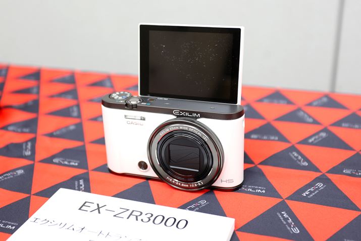 こちらは、7月31日に発売となる新モデル「EXILIM EX-ZR3000」。ウリは、写真を撮ったらそのままスマホでも見られる“シームレス”仕様。Bluetoothでスマホと常時接続することで、カメラのシャッターを押すだけでWi-Fi接続し、撮影した画像をスマホに自動送信するという仕組み。撮像素子は、1/1.7型で有効1,210万画素の裏面照射型CMOSセンサー。広角25mmからの光学12倍ズームレンズを装備