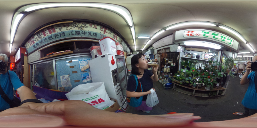 駅前の市場にて。元々レトロな感じの場所なのですが、球体になるとさらに建物の隅々までがわかり、時代を感じさせます