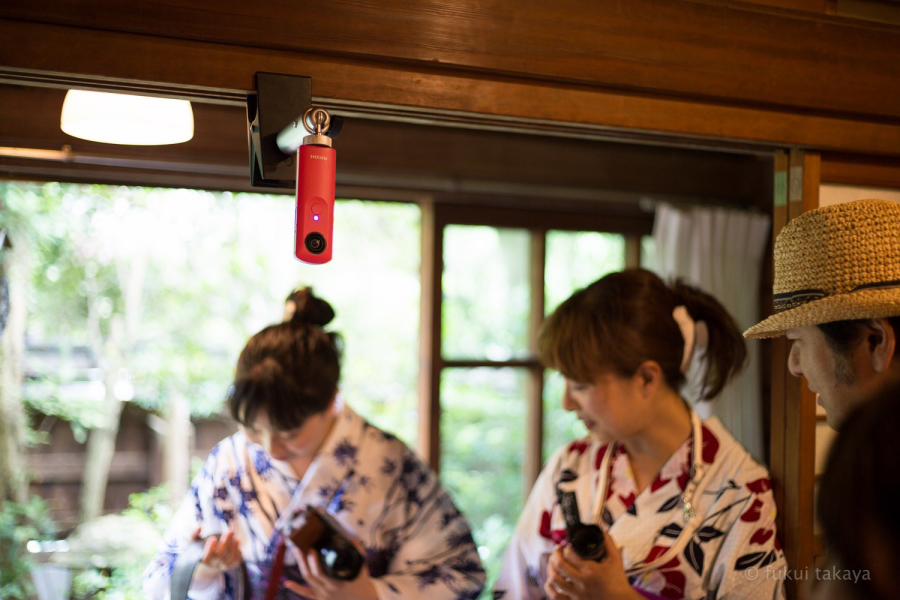 手持ちで撮影すると、自分が入ってしまうので、今回も壁にクリップで固定させて撮影。5分間隔でインターバル撮影を設定し、自然な動きを捉えてみました。人がたくさん入っている写真を撮りたくて、ちょうど浴衣撮影イベント中の古民家におじゃますることに