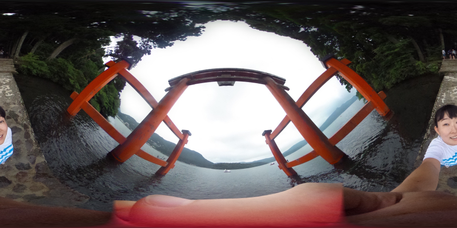 芦ノ湖の湖畔にある箱根神社の鳥居を「RICOH THETA m15」で撮ってみる