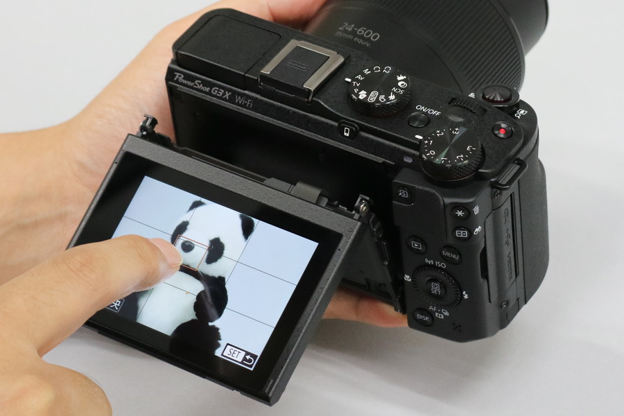 背面モニターは、G3 Xが、約162万ドットという高精細モニターを採用しているほか、唯一、タッチパネルに対応している。タッチ操作でのピント合わせ(タッチフォーカス)が行えるのは、使い勝手のうえで大きなポイントになるはずだ。