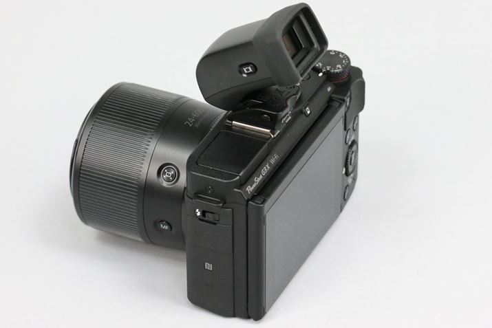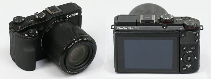 今回取り上げた4機種の中で、もっともコンパクトなボディとなるG3 X。独立した露出補正ダイヤルを搭載するほか、レンズ部に、マニュアルの操作リング(スムーズリング)を装備する。操作系がボディ右側に集中しているのも特徴だ
