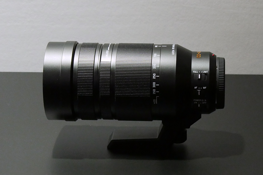 発表会会場には、同日に開発発表した「LEICA DG VARIO-ELMAR 100-400mm/F4-6.3」も展示されていた。マイクロフォーサーズとして初のLEICA DGズームレンズで、35mm判換算で最長800mmの超望遠ズームレンズだ