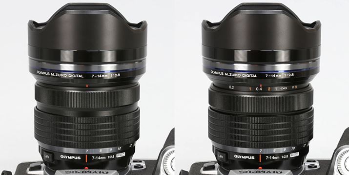 オリンパスによれば、M.ZUIKO DIGITAL ED 7-14mm F2.8 PROは、フォーサーズ用の広角ズームレンズ「ZUIKO DIGITAL ED 7-14mm F4」の性能はそのままに、小型・軽量化を図りながら、開放F2.8の明るさを実現できたとしている。そのボディサイズは、78.9(最大径)×105.8(全長)mmで、重量は534g。1段分明るくなっているにもかかわらず、フォーサーズ用のZUIKO DIGITAL ED 7-14mm F4(最大径86.5×全長119.5mm、重量780g)よりも小さくて軽い。「広角14mmスタートで開放F2.8」というスペックを考慮すると、非常にコンパクトなレンズだ。似たようなスペック・画角の一眼レフ用の広角ズームレンズと比べると、その差は歴然としている。