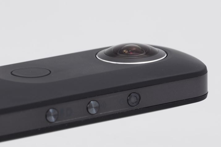 まずは、従来モデルTHETA m15(併売)から強化された部分を中心に、RICOH THETA Sのスペックを紹介していこう。ちなみに、前面と背面に搭載されたドーム状のレンズによりワンショットで全天球撮影が行えるという基本的な仕組みはそのまま継承。また、サイズ、重量ともに若干アップしているが、基本的なデザインも大きく変化していない。