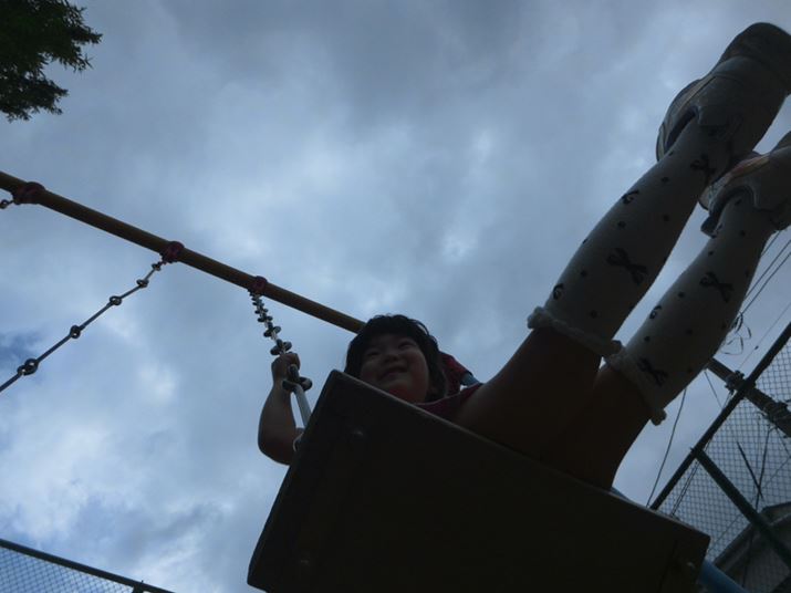 ブランコに乗っている子供を下から撮影してみた