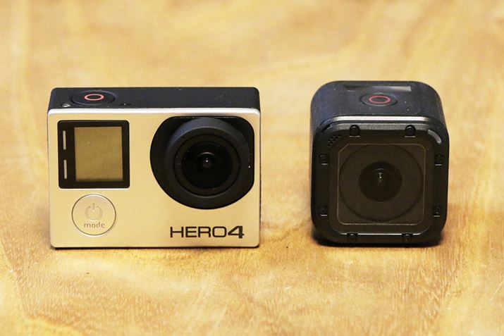 上位モデルHERO4 Silver(左)のサイズは、59(幅)×40.5(高さ)×30(奥行)mmで重さは88g。いっぽう、HERO4 Sessionはサイズが38.2(幅)×38.2(高さ)×36.4(奥行)mmで重さ74gとなっており、若干小さいといった印象だが……