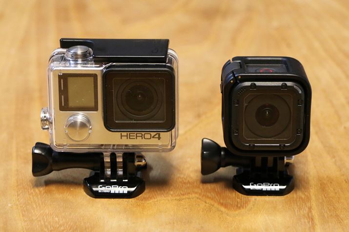 実際に使用する時には、防水機能を備えない上位モデルHERO4 Silverはハウジングが必要となる。HERO4 Sessionも「マウントフレーム」というものを装着しなければならないが、1辺の厚さは2.5mm程度(突起部分は約18mm)、重さ約15gなのでサイズ感が大きく変わることはない(筆者測定)。ハウジングに入れた際のHERO4 Silverのサイズは69.5(幅)×70.5(高さ)×39(奥行)mmで、重さは151gとなる。大きさも重さもHERO4 Sessionのほうが、半分以下だ