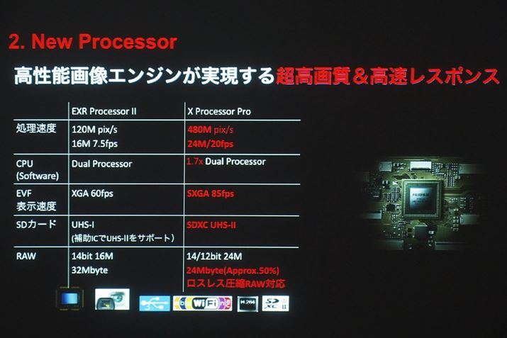 X-Processor ProはEXR Processor Pro IIと比べて処理速度が約4倍向上している。処理速度は480M pix/sとなっている
