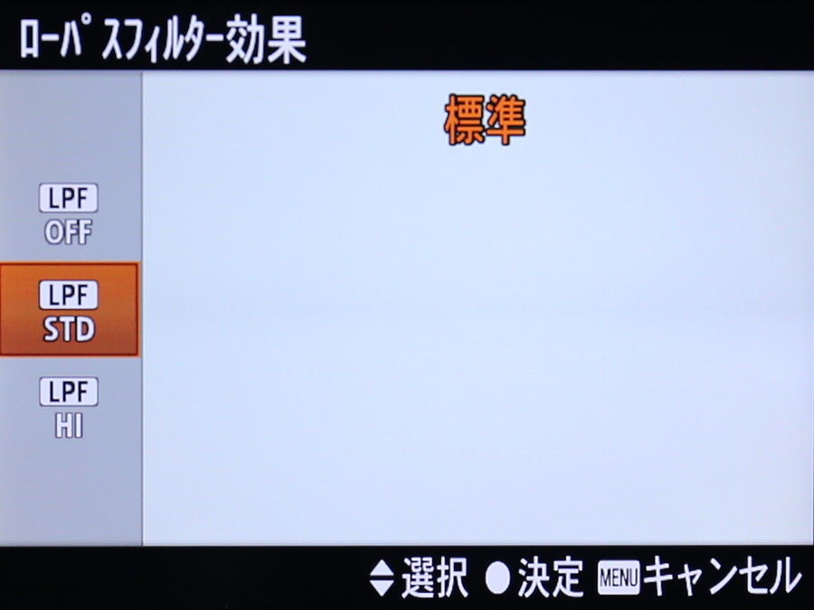 ローパスフィルターの効果は、「オフ」「標準」「強」を設定できる