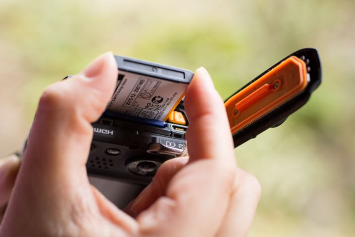 本体右のバッテリーカバーは開閉ダイヤルでロックをする仕組み(中央にあるボタンを押しながら左に回す)で、水や砂などが入らないようゴムパッキンが施されている