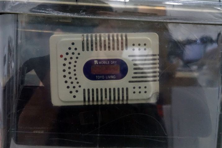 ドライボックスの場合、密閉タイプの容器に使い捨ての乾燥剤を入れて、ドライボックス内の湿気を吸い取ることで湿度を下げているのだが、乾燥剤の効果がなくなると新しい乾燥剤に交換しなくてはならない。特に梅雨時期はあっという間に乾燥剤の効果がなくなってしまうこともあり、取り換え用の乾燥剤のストックを管理するのが意外に面倒だったりする。しかし「モバイルドライ 除湿ユニット MD-2」なら、コンセントに挿してしばらく放置し、除湿能力が回復したらドライボックスに戻せばいい。使い捨ての乾燥剤を買い足す費用もかからないし、乾燥剤のストック管理まで気にしなくていいは便利だ。