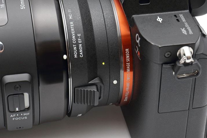 今回、MC-11のEF-Eモデルを使って、「35mm F1.4 DG HSM」「50mm F1.4 DG HSM」「24-105mm F4 DG OS HSM」「120-300mm F2.8 DG OS HSM」といったレンズと、「α7R II」「α7S」「α7」「α6300」のボディを組み合わせて試してみた。なお、レンズによってはMC-11に対応する新しいファームウェアが追加されているので、USB DOCK経由で最新ファームにアップデートを行ってから利用してほしい。
