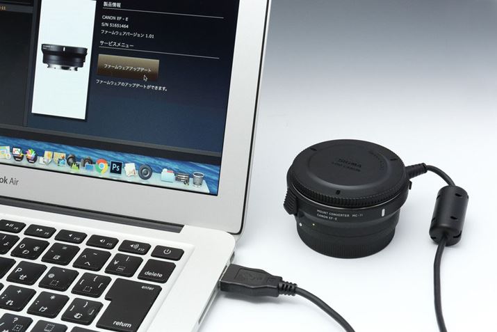 さらに、アダプター本体にUSB端子(ミニ8ピン平型)を搭載し、パソコン経由でのファームウェアアップデートに対応しているのも特徴。今後発売されるレンズについては最新のファームウェアに更新することで利用できるようになるとのことだ。