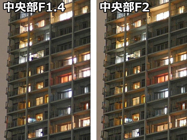 F1.4:ISO100、1/1.6秒、F2:ISO100、1.3秒