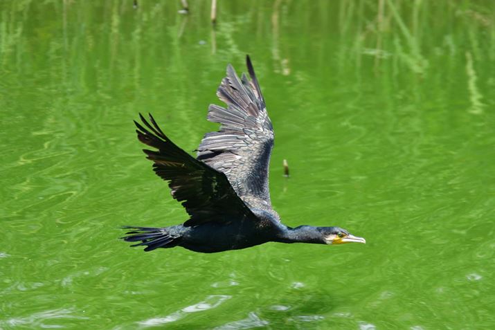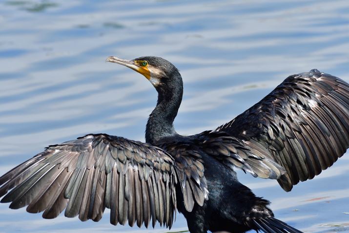 羽を広げたカワウを望遠端で狙ったもの。細かいところまでシャープに写せている
