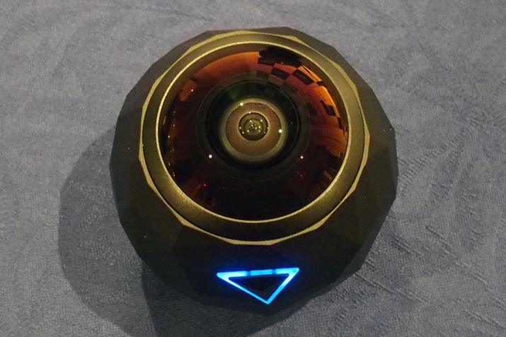 天面部分のレンズ部分。1つのレンズで映像を撮るため、2レンズタイプの製品のように動画にスティッチ(継ぎ目)ができない