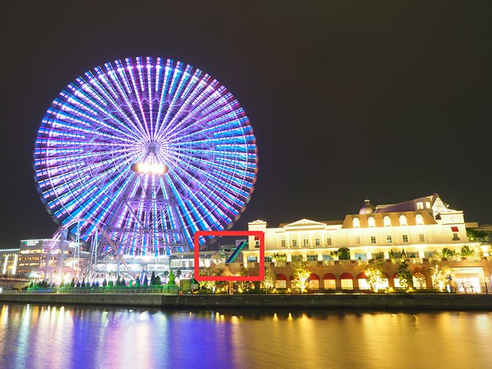 作例4と同様、手すりに寄りかかりながら撮影。作例4とは異なり、カメラを手すりの上に置いて手で固定するようにしてシャッターを切っている。13秒という長いシャッタースピードではあるが、カメラを固定して動きを抑えることによって手ぶれの目立たない写真を撮ることができた。成功写真は10枚中2枚。