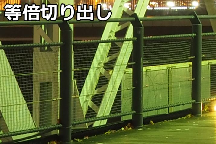 この作例では、手すりに寄りかかりながら、手すりの上にカメラを乗せて撮っている(カメラをホールドした両手を乗せている)。回転ぶれも抑えられており、手ぶれの気にならない写真と言っていいだろう。成功写真は8枚中2枚だった。