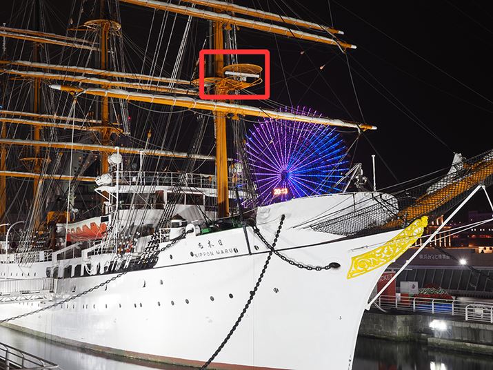 作例1を撮影した後、さらに暗くなった状況で撮ったもの。手すりに両肘をついた状態でシャッタースピード6秒での撮影となったが、作例1と同じように手ぶれの気にならない写真になった。周辺部で目立ちやすい回転ぶれもよく抑えられている。4〜6秒のシャッタースピードで計20枚撮影したが、成功写真は4枚だった。