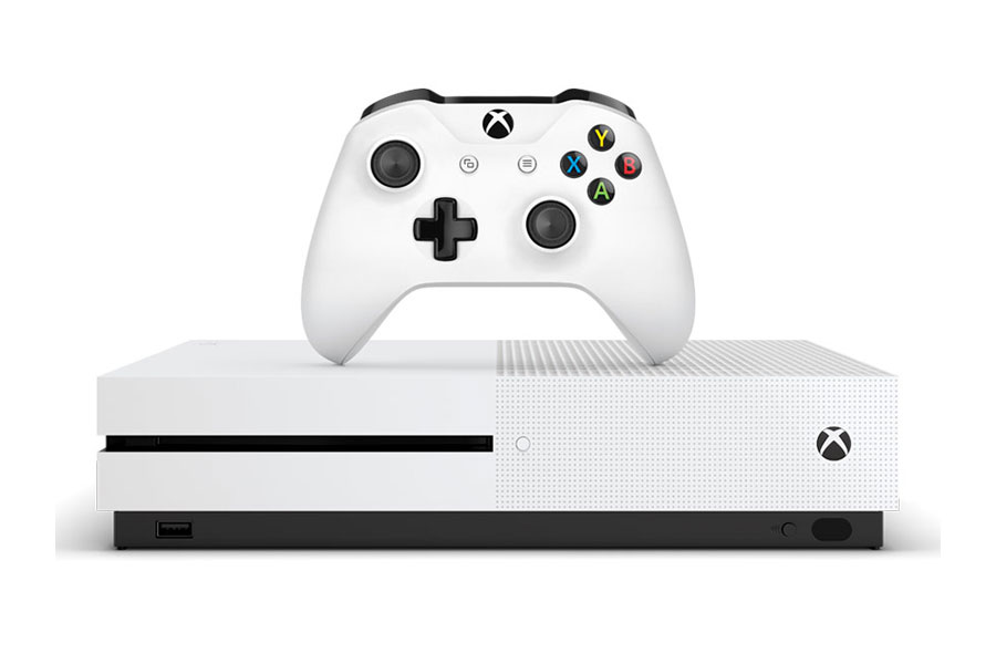 従来の「Xbox One」より小型化したモデル。人気FPSゲーム「Halo: The Master Chief Collection」(ダウンロード版)と「Halo 5」(ディスク版)を同梱。また、本体には1TBのHDDを搭載し、「Xbox One」対応ゲームや「Xbox 360」下位互換機能に対応した「Xbox 360」対応ゲームなど多くのゲームを保存しプレイすることができる。