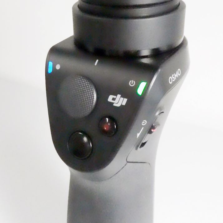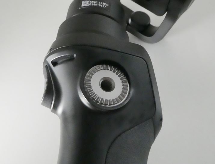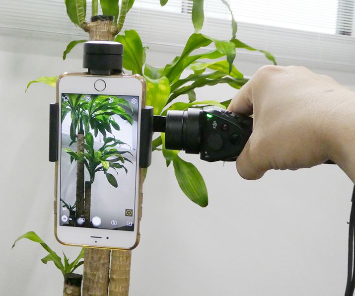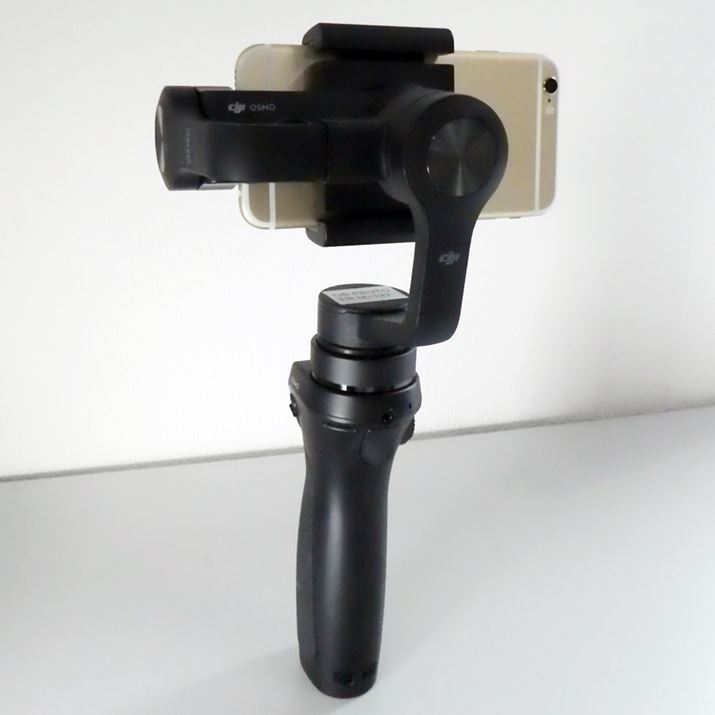 Osmoのシリーズ製品というだけあり、下部のハンドル(ハンドグリップ)や操作部分はまったく同じだ。そして上部は、カメラの代わりにスマホを取り付けられる機器が取り付けられている。今回は5.5インチのiPhone 7 Plusを組み合わせて使用したが、ケースを付けた状態でも問題なく装着することができた。