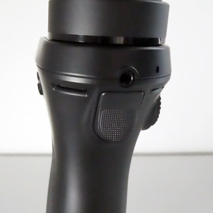 Osmo Mobileのバッテリー充電には専用の充電ケーブルを使用。ハンドル部分をOsmoと流用しているため、Osmoのマイク入力端子があった位置に充電端子は用意されている。部品を流用しているため、バッテリー充電に専用ケーブルが必要になってしまったのは仕方がない部分ではあるが、microUSBケーブルを使うタイプだったらもっと使い勝手がよくなるのにと思ってしまう
