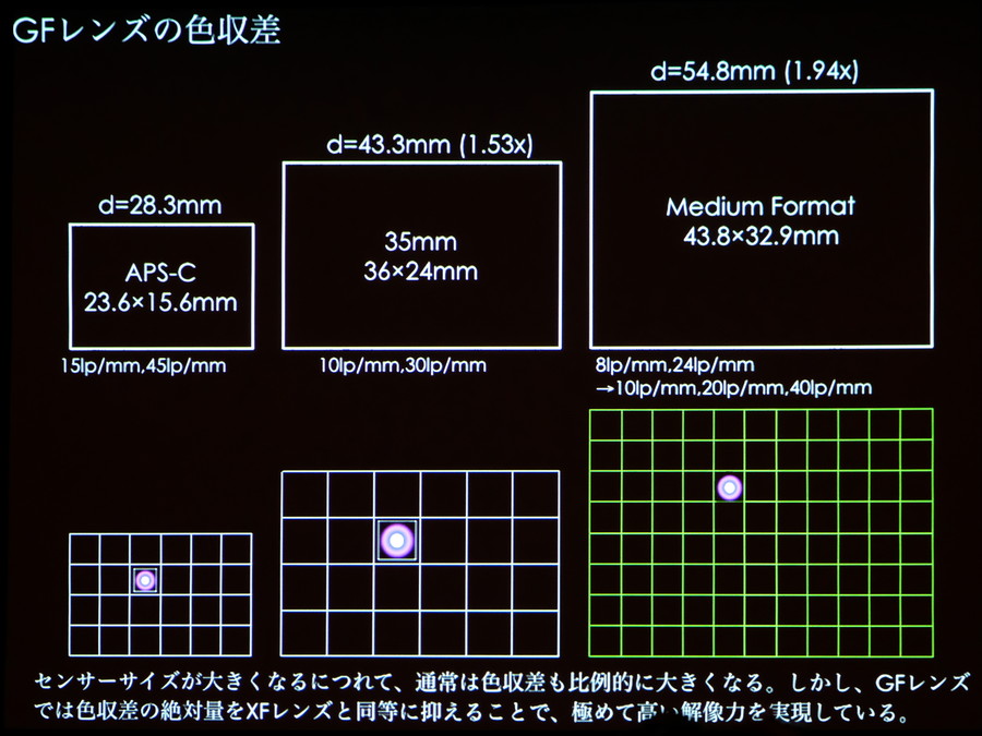GFレンズは、色収差の絶対量がXFレンズと同様になるように設計されている