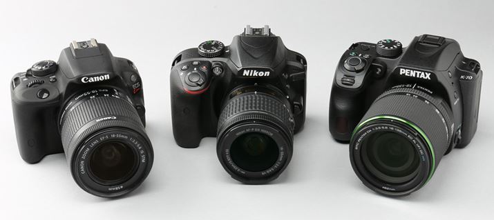 左からEOS Kiss X7、D3400、K-70。2ページ目以降でこれらエントリー向け3モデルの画質や操作性をチェックします