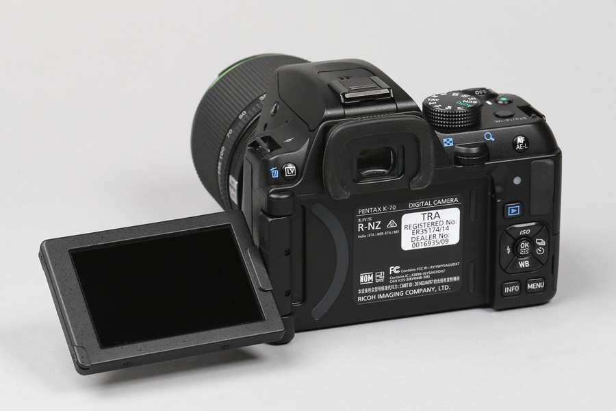 K-70は、3.0型 (約92.1万ドット)のバリアングル液晶モニターを採用。ライブビュー撮影時にローアングルやハイアングルから撮りやすいです