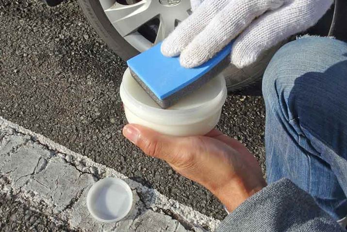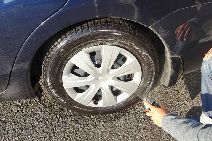 これもタイヤの汚れを落として使用するのが前提なので、塗布前に水洗いをします