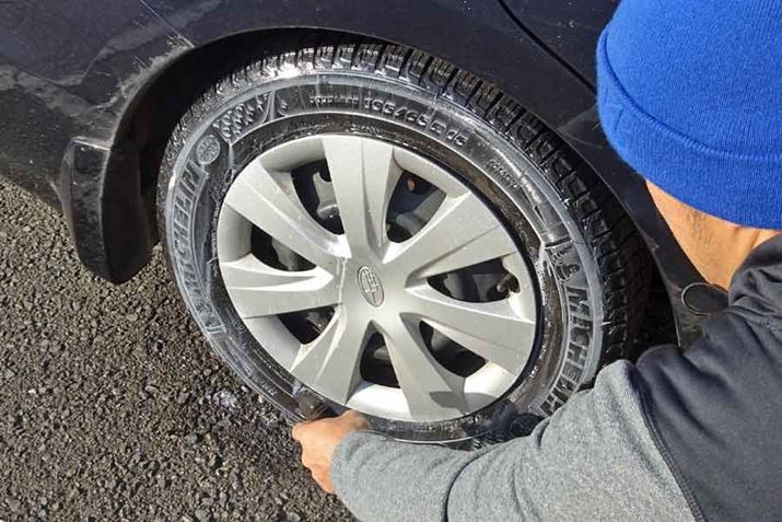 条件が比較的厳しいと思える前輪に「塗り込む系」を、後輪に「お手軽系」を使用することにしました。そして塗布した直後と、1週間後の様子を見比べてチェックします。1週間の間に積雪路面をガンガン走ったり雨に降られたりしたので、4輪ともそれなりに厳しい状況にさらされたといえるでしょう。