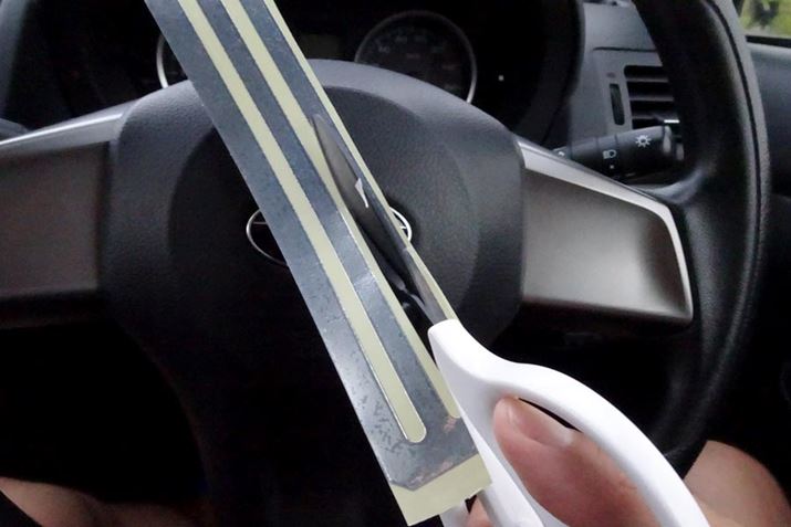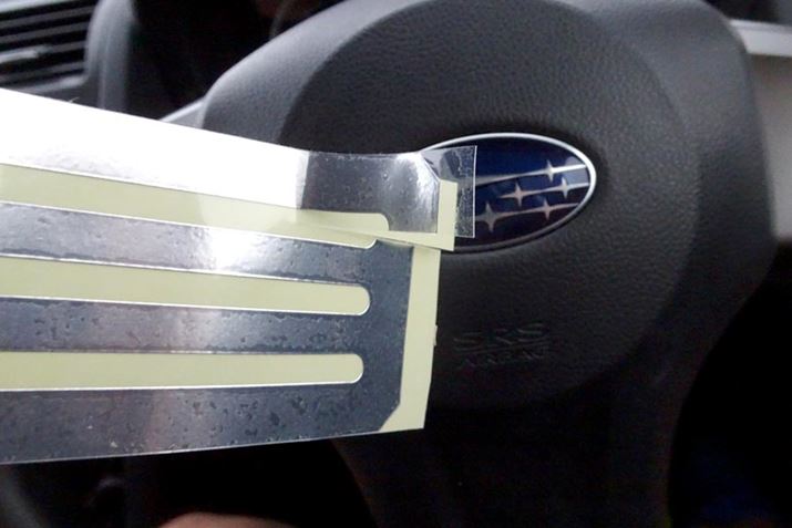 細長く切られたアルミのテープをクルマの各部に貼ると、ただそれだけで走りのフィーリングがよくなるというもの。