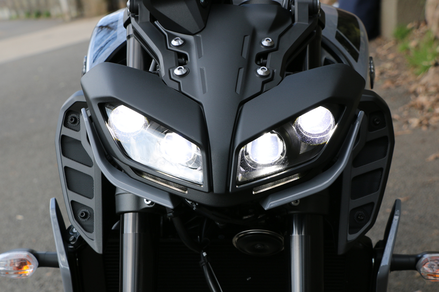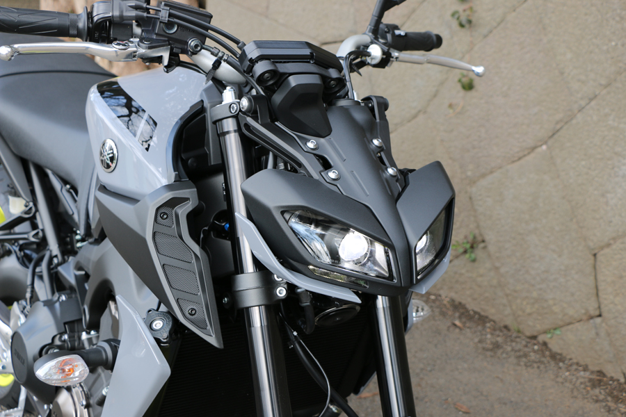 公道での目立ち度を増したフロントマスク。ヤマハでは「2眼デザイン」と呼んでおり、より有機的でアグレッシブな走りを想像させる雰囲気となった