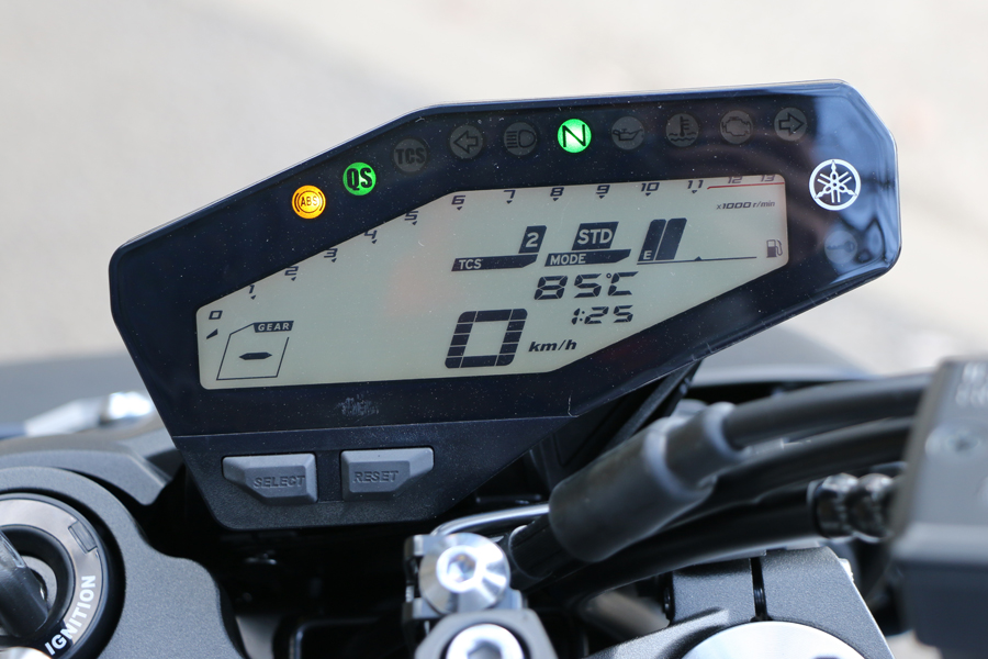 このほか、走行モードの切り替えを行う「D-MODE」や、急にアクセルを開けた際にリアタイヤが空転するのを抑制する「トラクション・コントロール・システム(TCS)」といった先進機能が盛り込まれているのも「MT-09 ABS」の特徴。それにともない、スロットルも電子制御となっている。ストリート向けのモデルではあるが、レース向け車両に採用されるような先進機能が搭載されているのも人気の理由のひとつだろう。