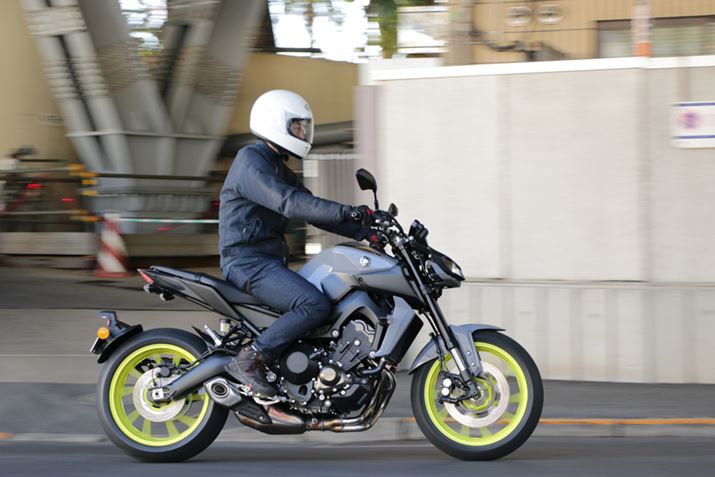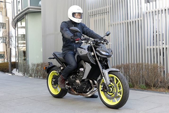 ロードタイプのバイクとしてはかなり前方に座り、それでいてアップライトなハンドルで上体は起きているという独特のライディングポジションとなっている「MT-09 ABS」。「MT-09 ABS」と同じ「クロスプレーン・コンセプト」と呼ばれる845ccの3気筒エンジンを搭載したネイキッドスタイルの「XSR900」にも試乗したことがあるが、ライディングポジションの違いが走行感をどのように変えるのか、非常に楽しみだ。