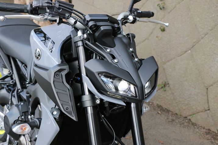 今回のモデルチェンジで大きく変更されたのはデザイン。もともと個性的な外観ではあったが、フロントフェイスがより迫力あるものに一新され、リアのナンバープレートマウントも片持ち式に変更された。ハイパワーのマシンにアップライトなハンドルを装備し、有機的なデザインのライトを装着した形は“ストリートファイター”と呼ばれるジャンルのもの。「MT-09」は元来ストリート色の強いモデルではあるが、新型ではよりそのカラーが強く打ち出されたと言えるだろう。