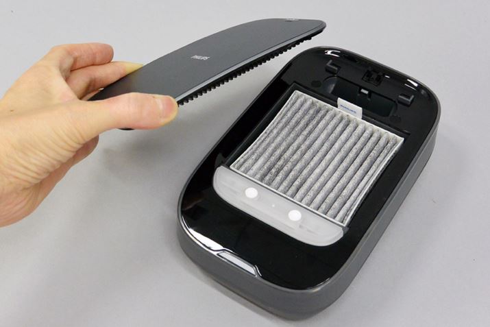 内部にはフィルターが搭載されており、吸込口から取り込んだ空気をろ過して放出。ちなみに、フィルターは6か月に1回の交換が推奨されています(フィルターの価格は1枚約3,000円)