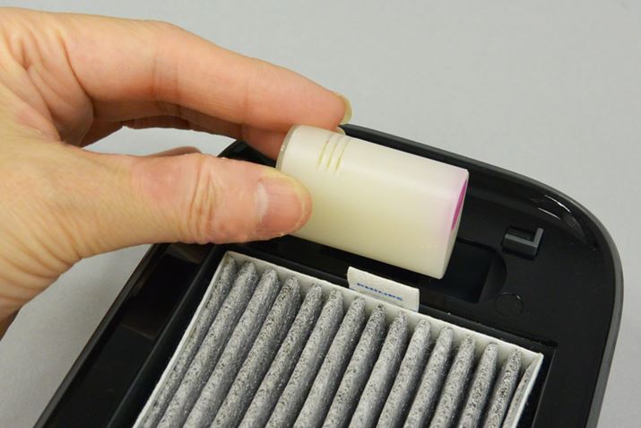 付属のアロマカートリッジをセットすれば、いい香りを車内に放出することも可能(今回は使用していません)