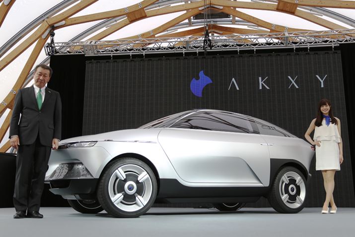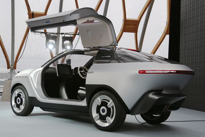 旭化成は、同社の最先端技術を投入したEVコンセプトカー「AKXY(アクシー)」を発表した。AKXYは3人乗りのクロスオーバーEV。ドアはガルウイングが採用されている。