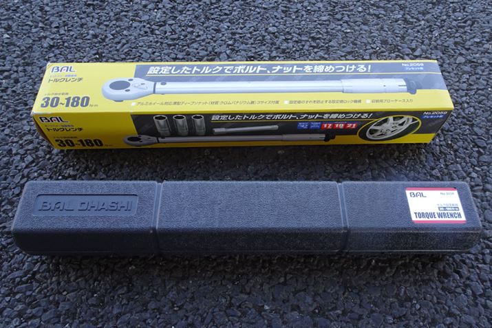 しかし、最近になって自分のクルマでサーキット走行をする機会が増えたこともあり、「勘や力任せではなく、正確な締め付けトルクでホイールナットを締めたい」と思うようになったので、お手頃な価格のトルクレンチを試してみることに。私が購入したのは大橋産業株式会社の「トルクレンチ 2059」という商品です。念のため説明しますと、トルクレンチとは、車種ごとに決まった規定の力でホイールナットを締めるためのツールです。