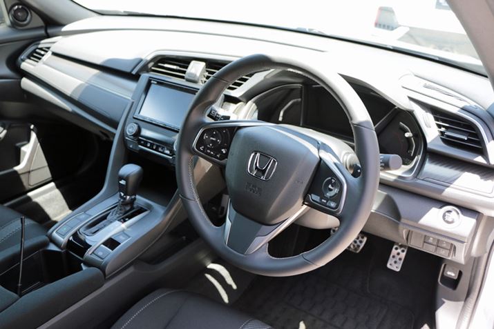 エンジンは、セダンもハッチバックも1.5LのVTECターボを採用。正式なスペックは明らかにされていないが、セダンが127kW(173ps)/5,500rpm、ハッチバックが134kW(182ps)/6,000rpmという数値が、車内測定値としてあげられていた