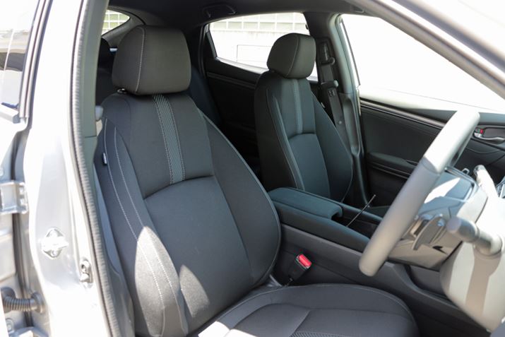 シートはシンプルだが、ホールド性は高い。肩の部分の角が取れたようなデザインは、リアシートに腰かけた人が圧迫感を感じないための配慮だという